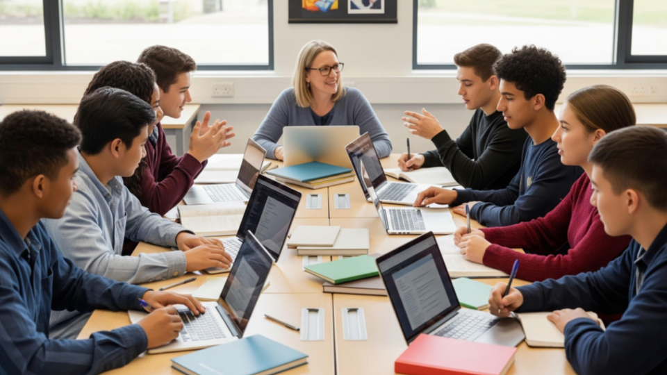Within a partner school a lead teacher oversees regular sessions where students come together to engage with our learning content and complete the assigned tasks.